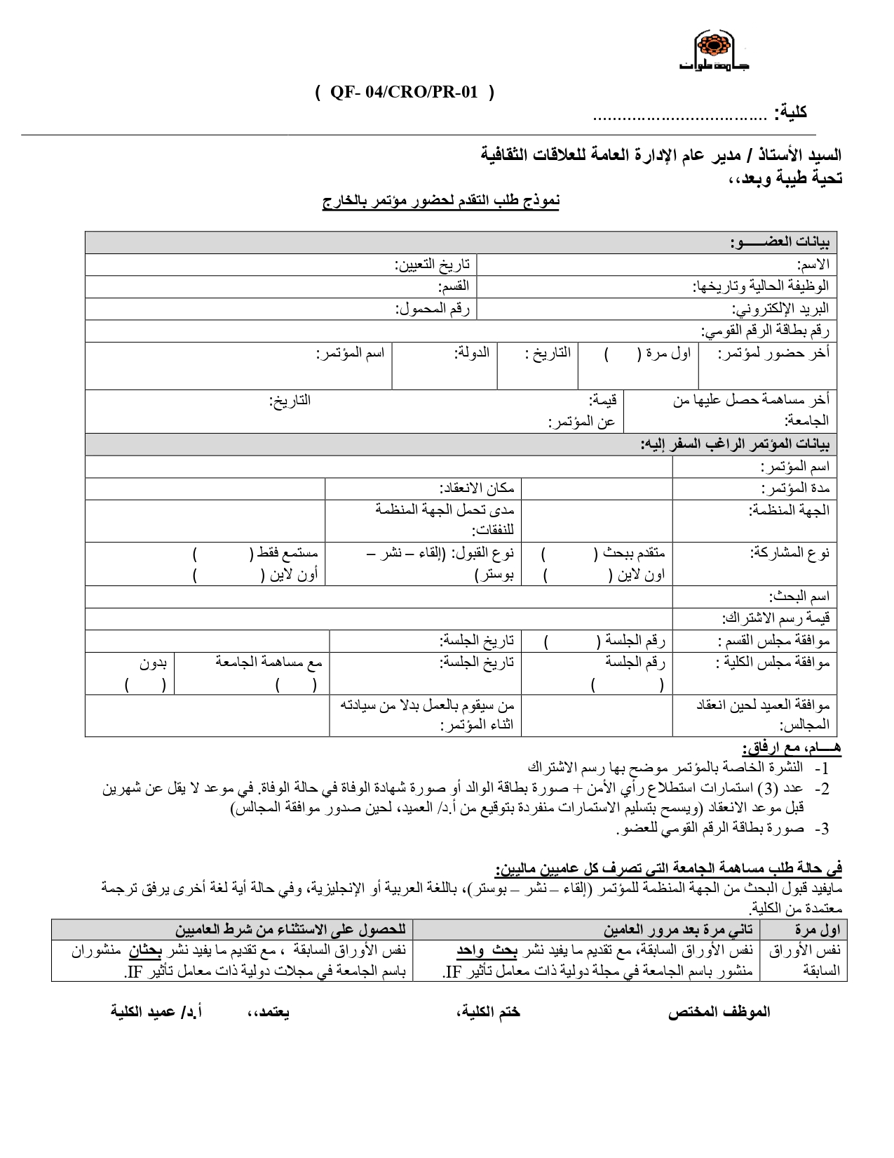 * نموذج طلب عقد الكلية لمؤتمر (دولي. محلي - ندوة - ورشة - ملتقى) >>> برجاء الضغط هنا