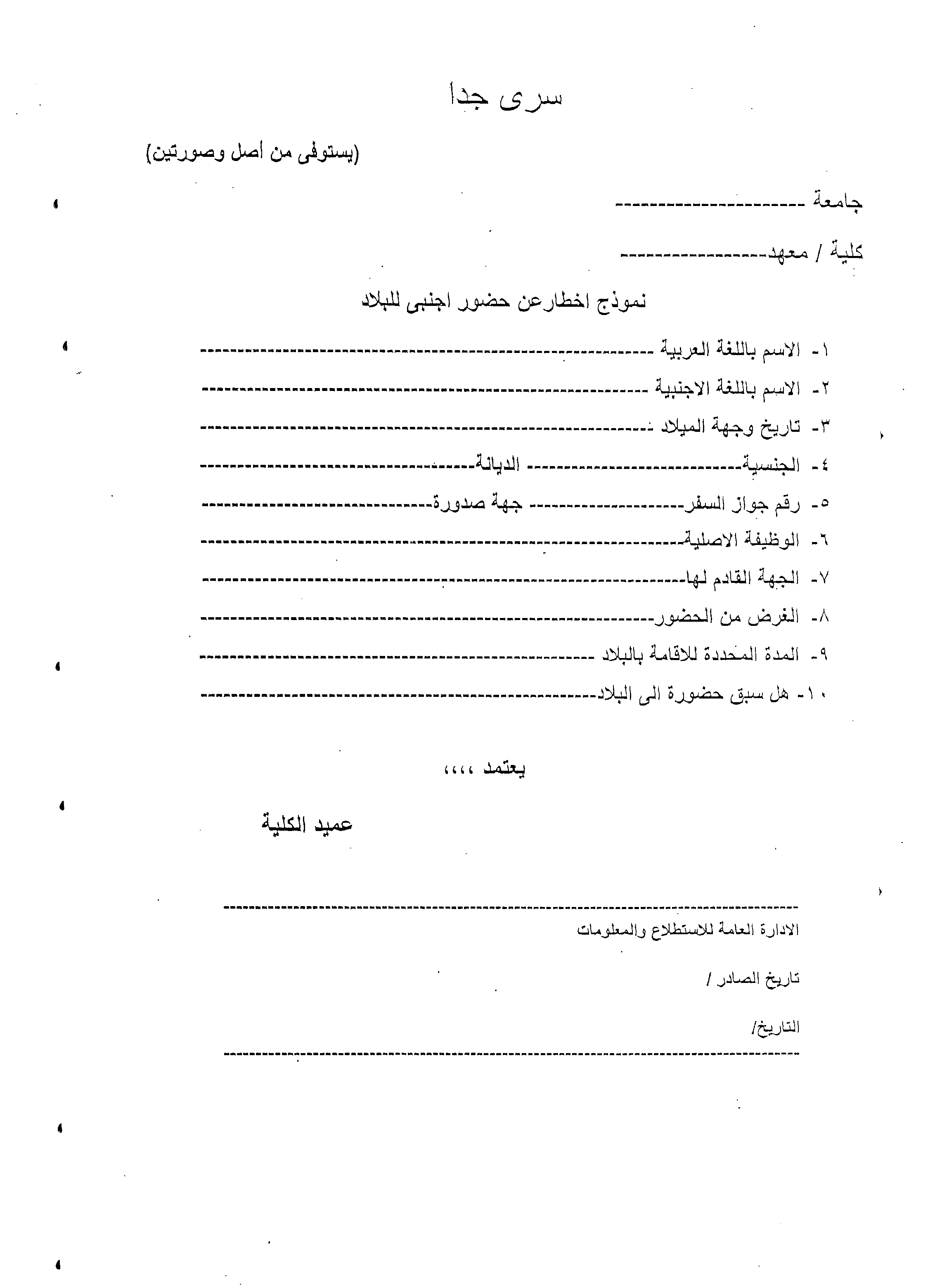 نموذج اخطار حضور اجنبي للبلاد >>> برجاء الضغط هنا
