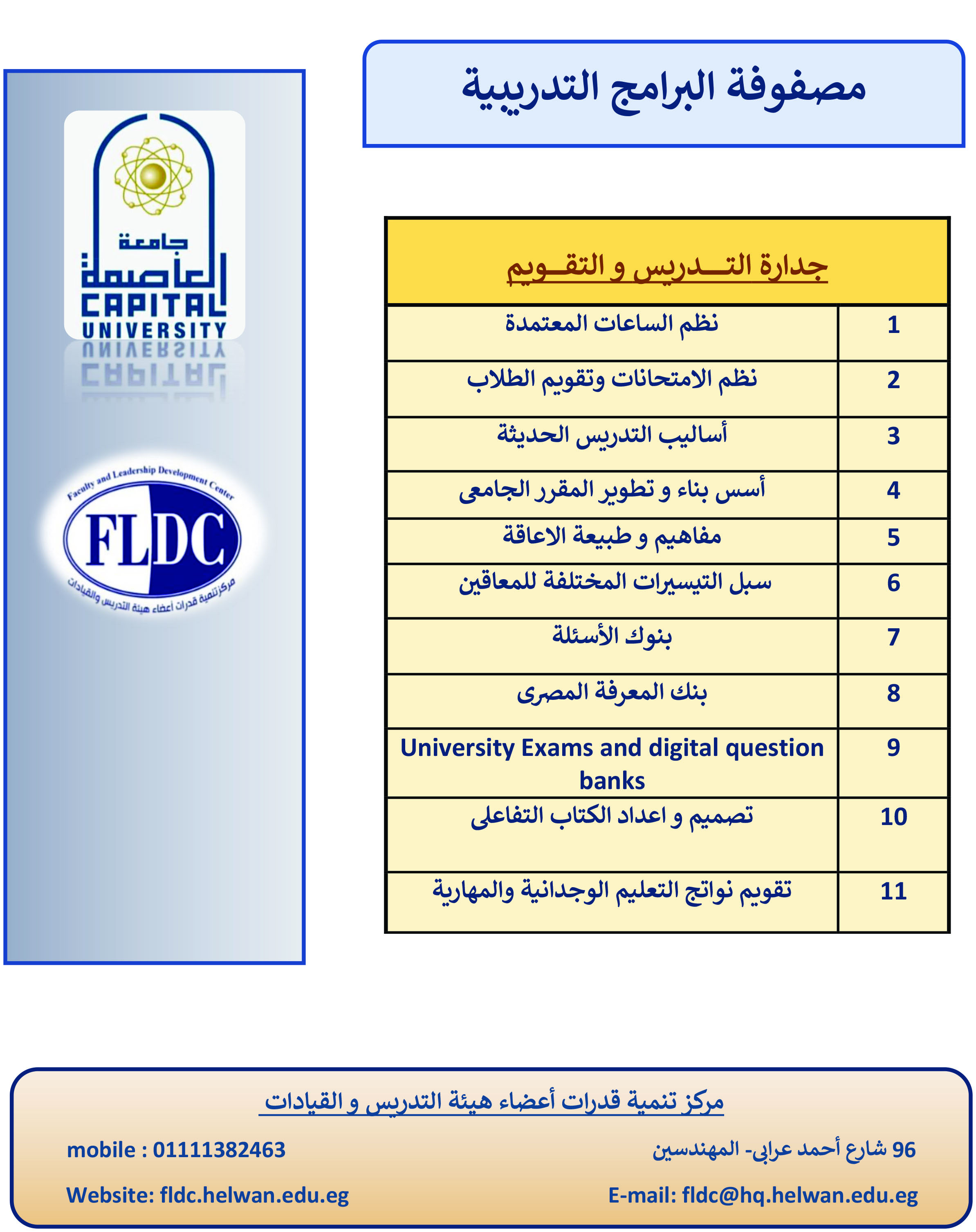 بدأ مشروع تنمية قدرات أعضاء هيئة التدريس والقيادات (FLDP ) فى سبتمبر 2004 كنتيجة لمؤتمر تطوير التعليم العالى و الذى عقد عام 2000 ، و قد أثمر هذا المؤتمر عن إقرار البدء بالعمل فى حزمة برامج لتطوير منظومة التعليم العالى ، منها مشروع تنمية قدرات أعضاء هيئة التدريس و القيادات (FLDP)، واستمر العمل فى المشروع منذ بدايته فى سبتمبر 2004 من خلال ستة مراحل تنتهى فى يوليو 2008. و قد استقل المشروع عن المجلس الأعلى للجامعات فى يوليو 2008 ، و أصبح مركز تنمية القدرات والتدريب المستمر (CDOT) و أصبح المركز وحدة ذات طابع خاص لها استقلال فنى ومالي و إداري بقرار مجلس الجامعة رقم (68) بتاريخ 24/11/2009 . وتم تغيير مسمى المركز من مركز تنمية القدرات والتدريب المستمر (CDOT) إلى مركز تنمية قدرات أعضاء هيئة التدريس والقيادات (FLDC) ، وذلك فى اجتماع مجلس إدارة المركز فى جلسته رقم (1) بتاريخ 28/12/2010