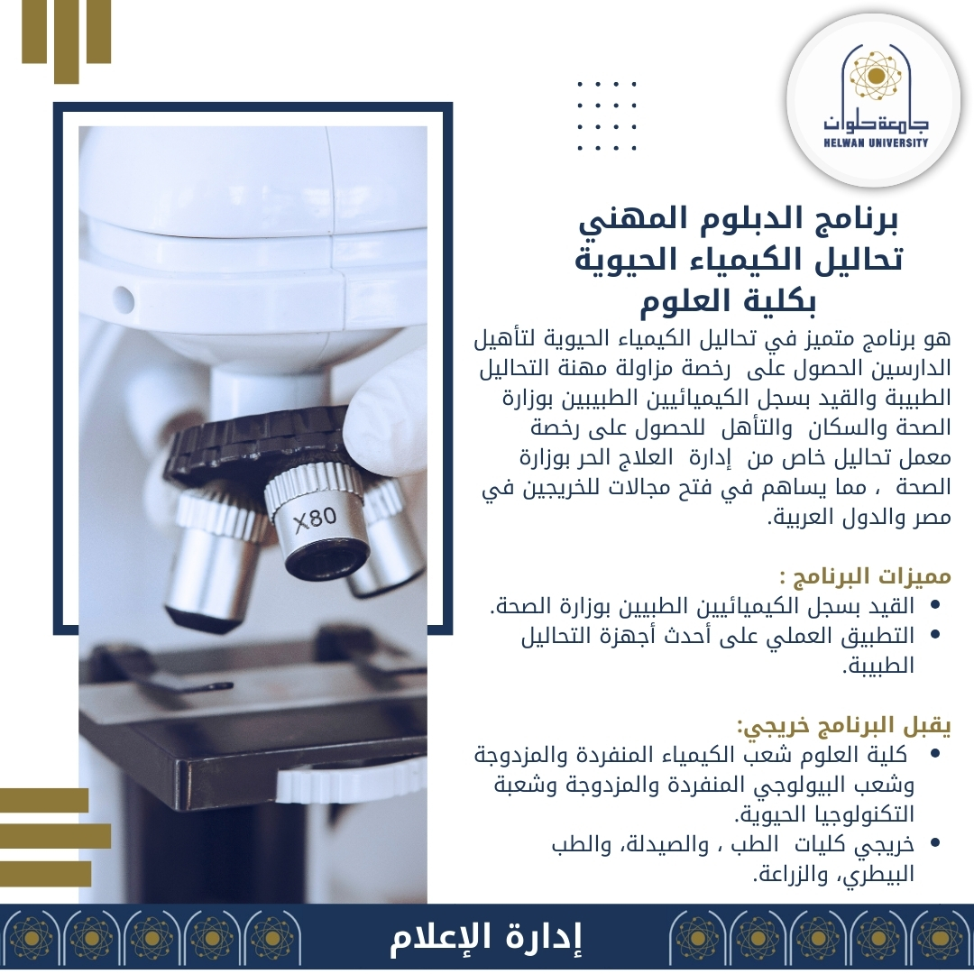 الدبلوم المهني تحاليل الكيمياء الحيوية .. بكلية العلوم