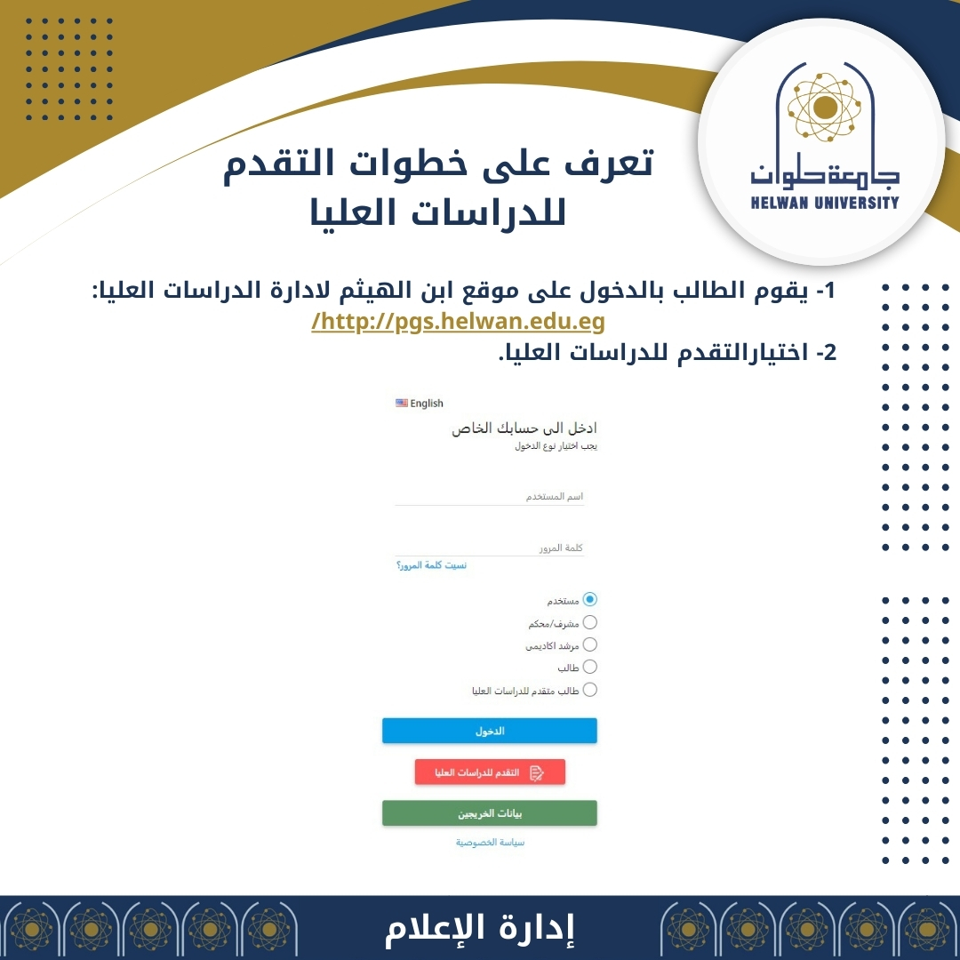 تعرف على خطوات التقدم للدراسات العليا .. بجامعة حلوان