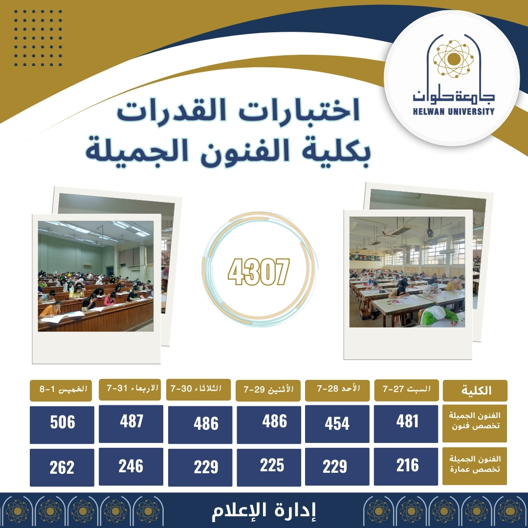 4219 طالب وطالبة أدوا اختبارات القدرات بكليه الفنون التطبيقية جامعة حلوان