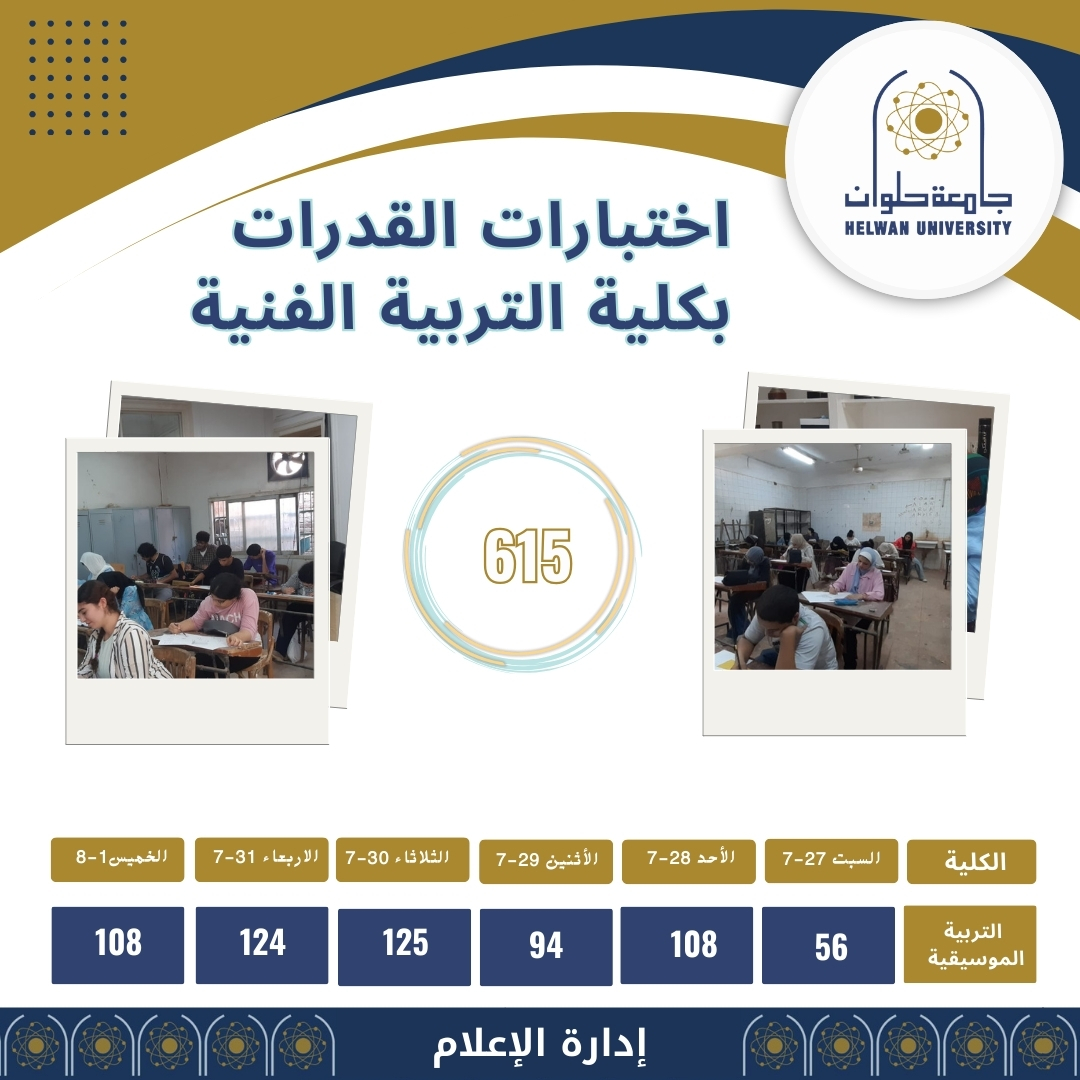 615 طالب وطالبة خضعوا لاختبارات القدرات بكلية التربية الفنية