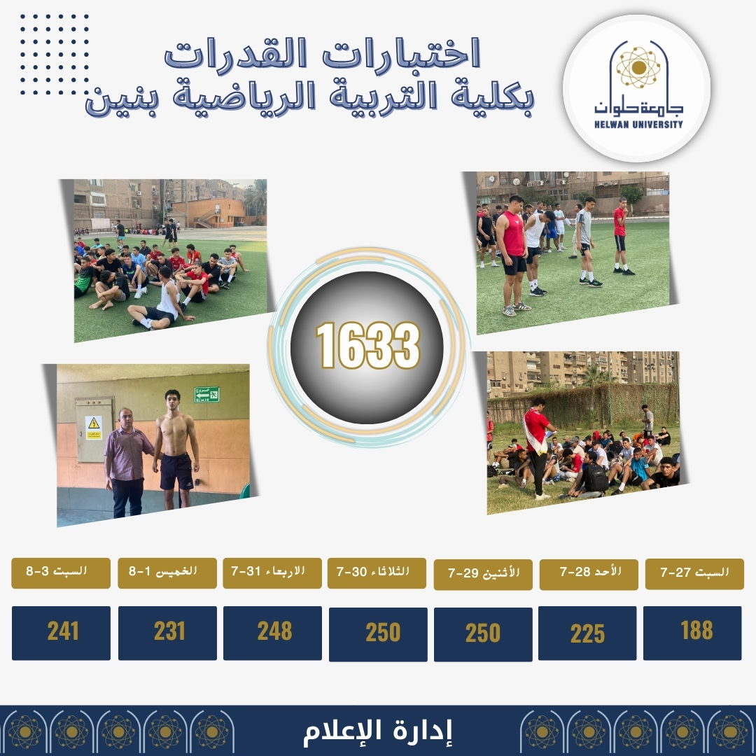 1633 طالب يخضعون لاختبارات القدرات بكلية التربية الرياضية بنين