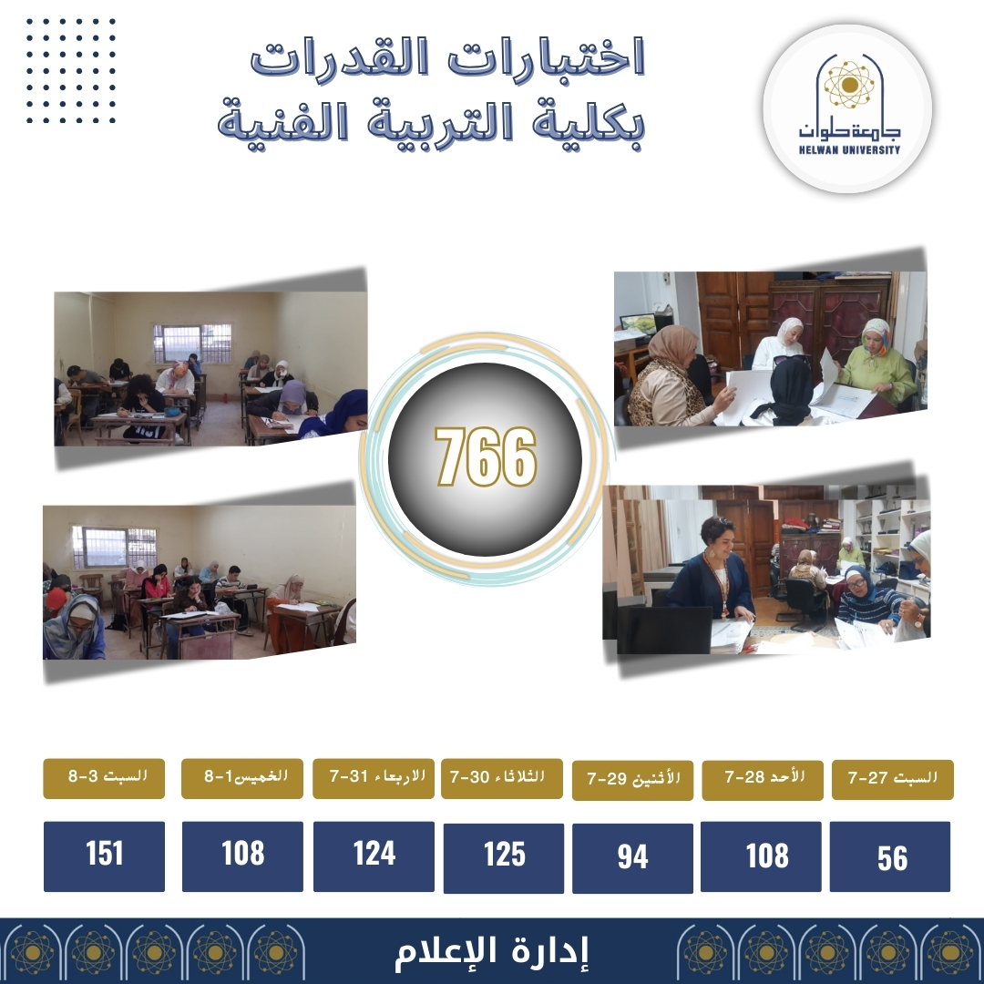 766 طالب وطالبة خضعوا لاختبارات القدرات بكلية التربية الفنية بجامعة حلوان