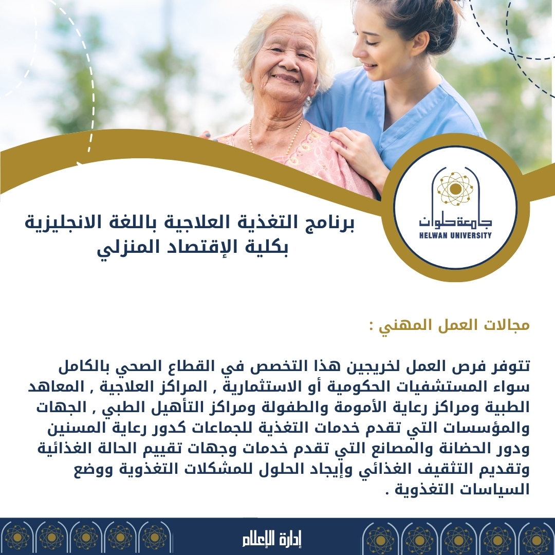 تعرف على برنامج التغذية العلاجية باللغة الانجليزية بكلية الإقتصاد المنزلي