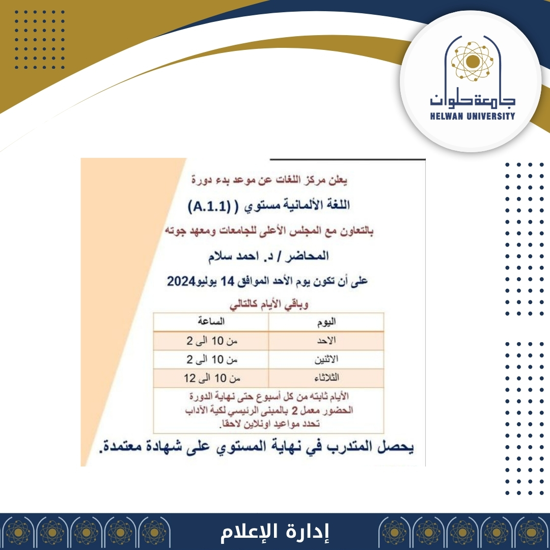 مركز اللغات بجامعة حلوان يعلن عن بدء دورة اللغة الألمانية