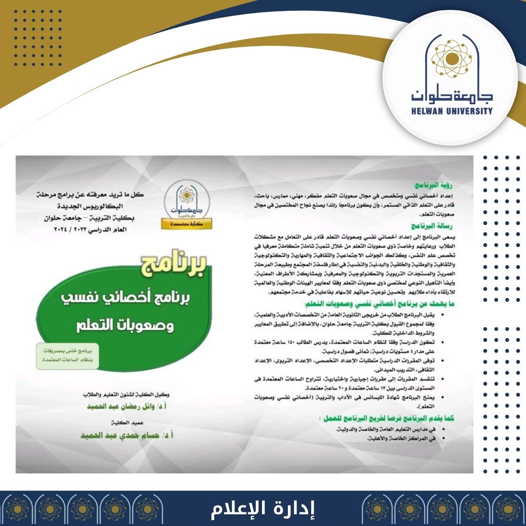 برنامج أخصائي نفسي وصعوبات التعلم بكلية التربية