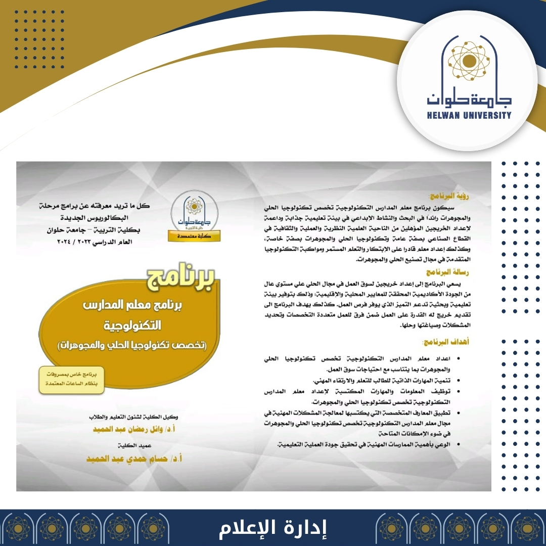 برنامج معلم المدارس التكنولوجية تخصص تكنولوجيا الحلي والمجوهرات