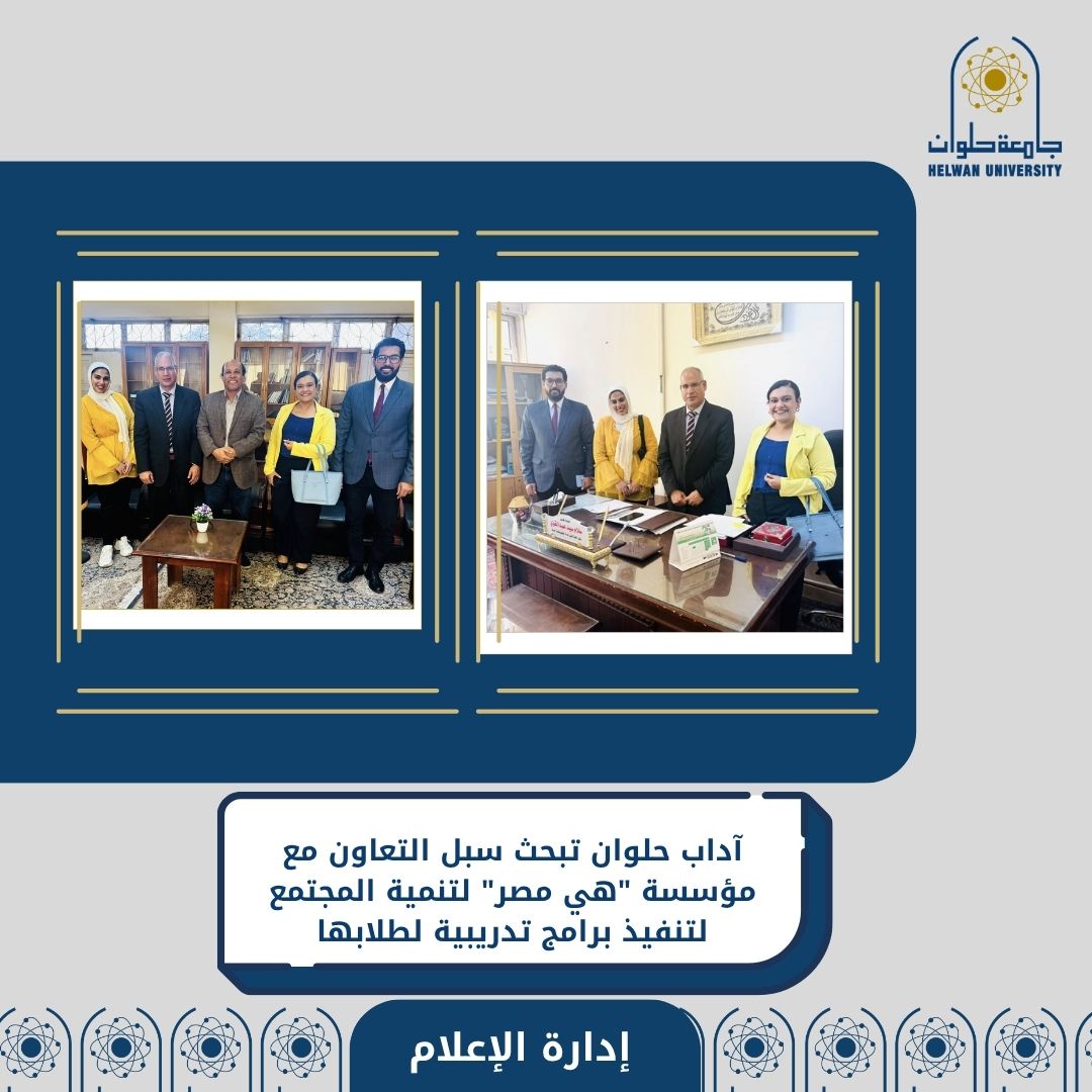 آداب حلوان تبحث سبل التعاون مع مؤسسة "هي مصر" لتنمية المجتمع لتنفيذ برامج تدريبية لطلابها