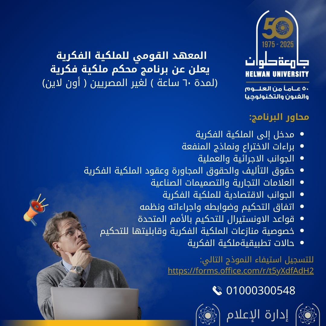 فتح باب التقديم لبرنامج محكم فى الملكية الفكرية لغير المصريين
