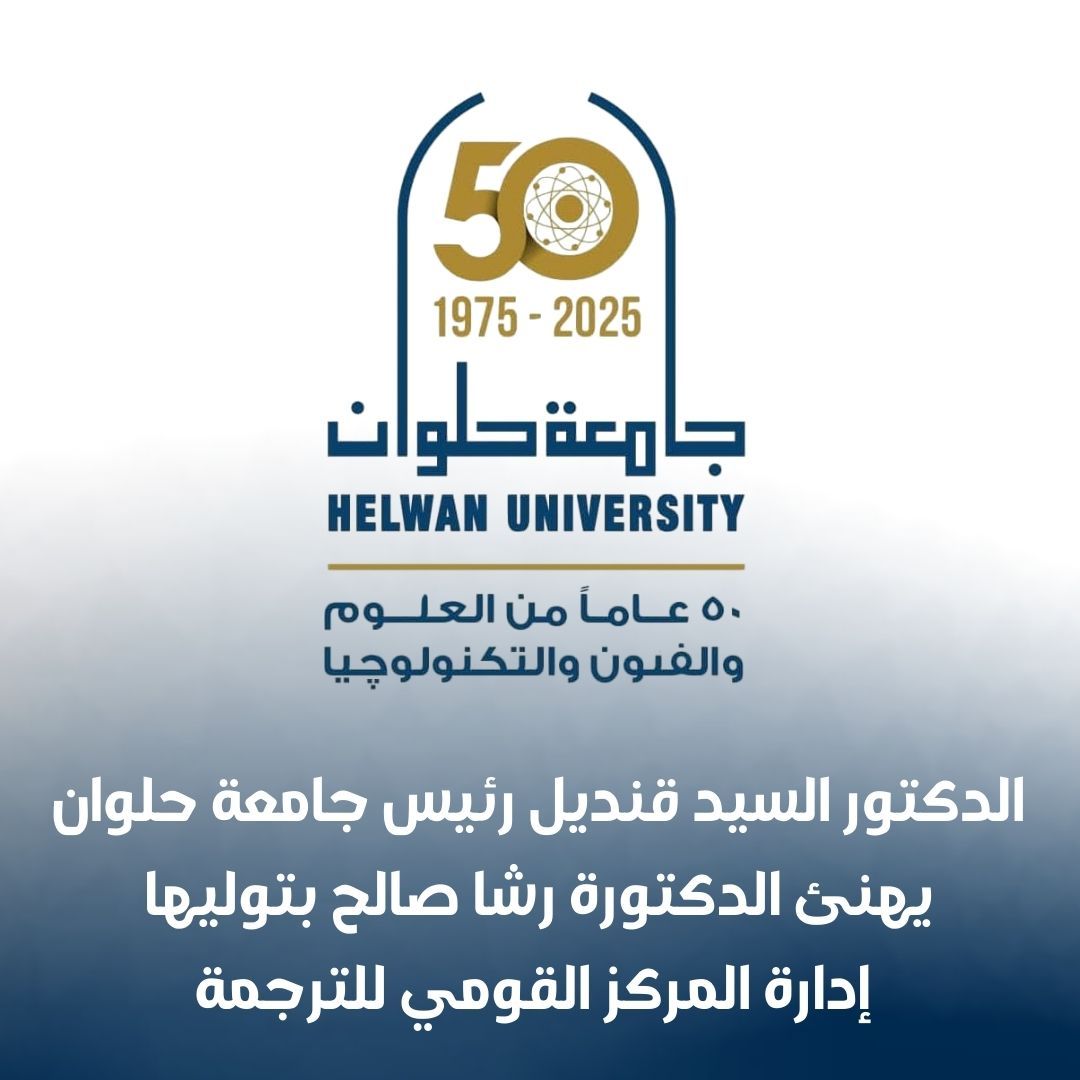 رئيس جامعة حلوان يهنئ الدكتورة رشا صالح بتوليها إدارة المركز القومي للترجمة