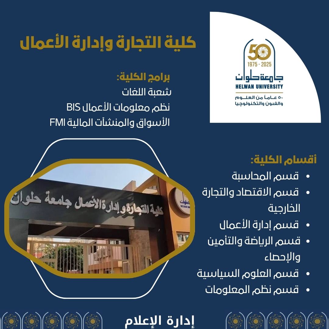 كلية التجارة وإدارة الأعمال بجامعة حلوان مستقبل واعد فى علوم المال والأعمال