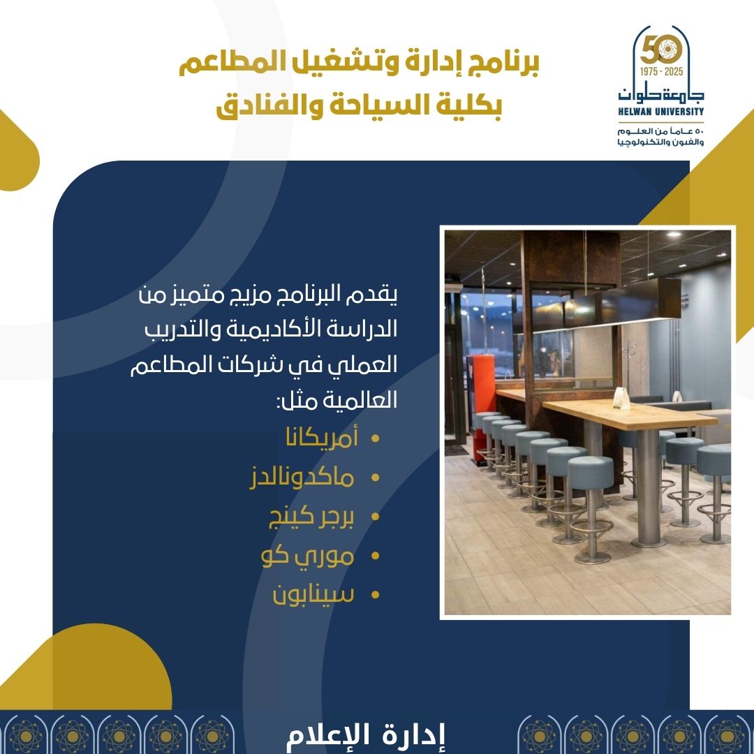 برنامج بكالوريوس إدارة وتشغيل المطاعم بكلية السايحة والفنادق