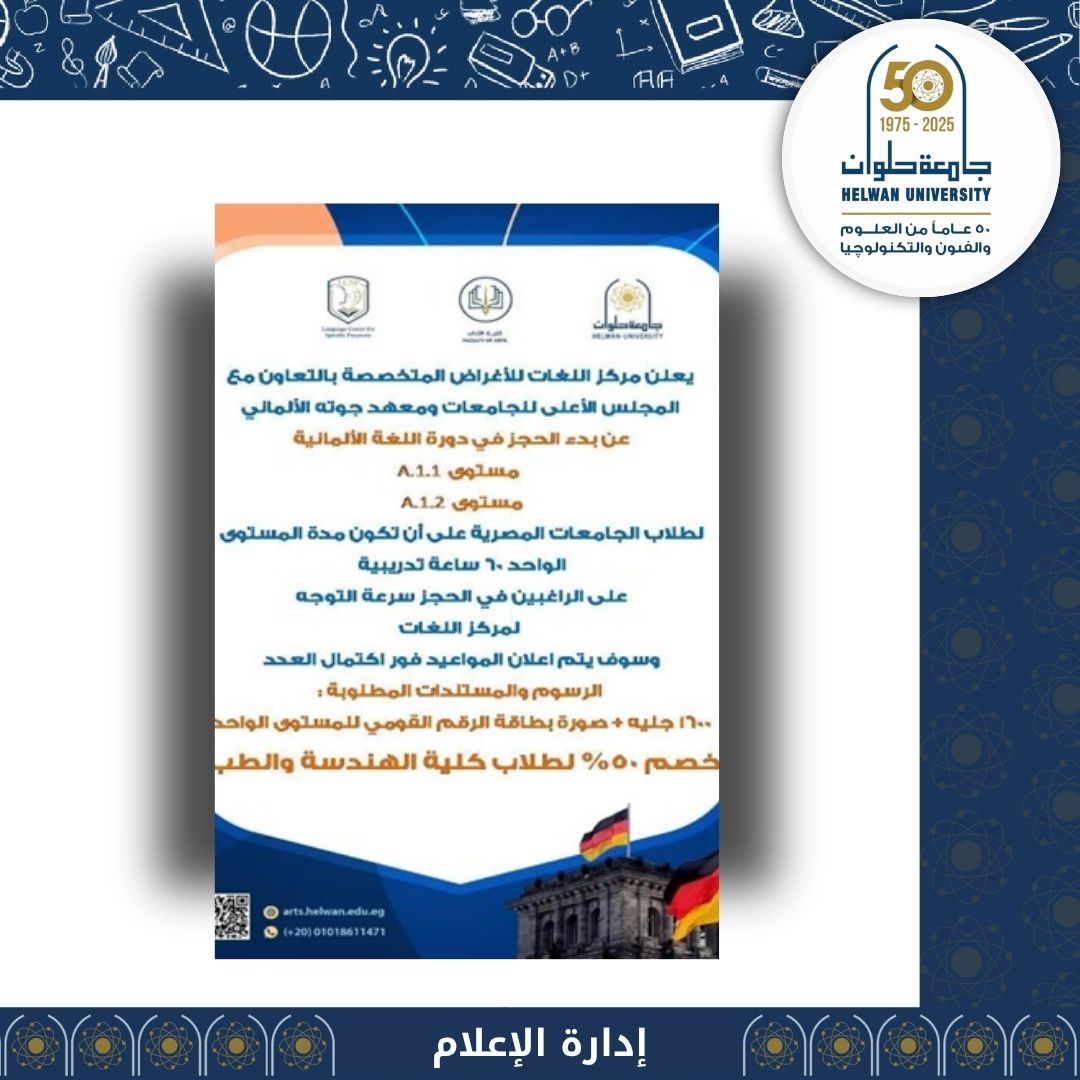 مركز اللغات بجامعة حلوان يعلن عن بدء دورة اللغة الألمانية