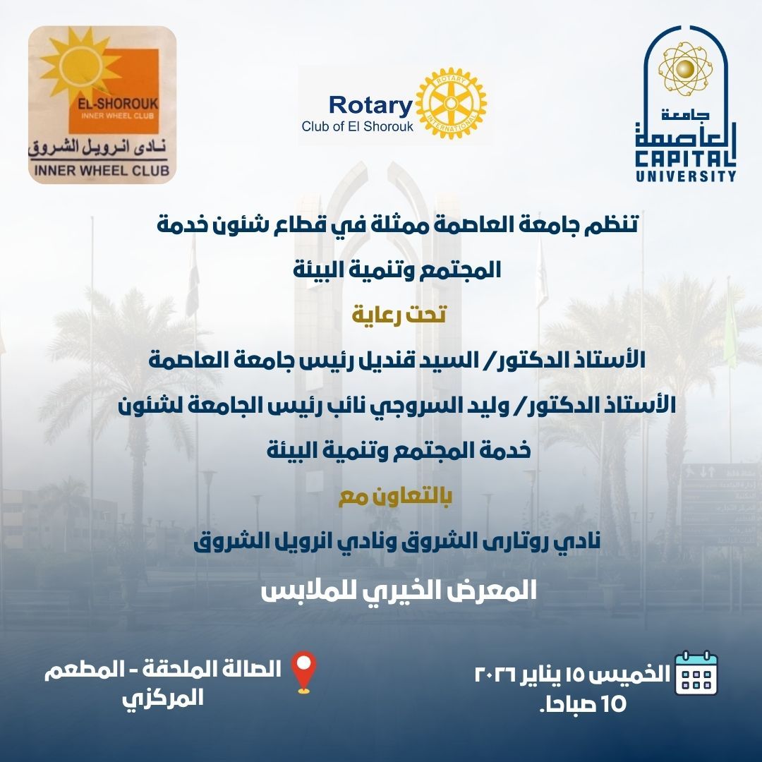 جامعة العاصمة تنظم معرضًا خيريًا للملابس بالتعاون مع نادي روتاري الشروق وإنرويل الشروق