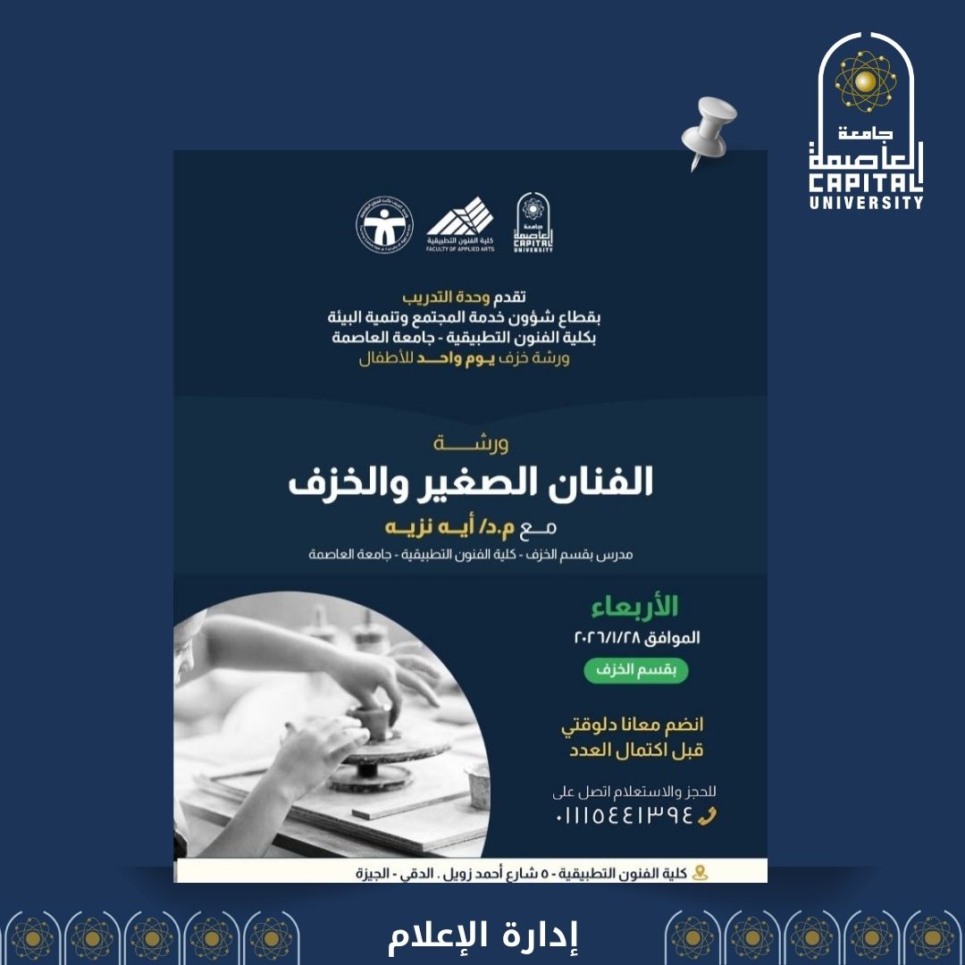 جامعة العاصمة تطلق ورشة خزف ليوم واحد للأطفال والشباب بكلية الفنون التطبيقية