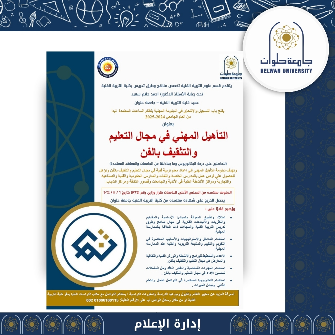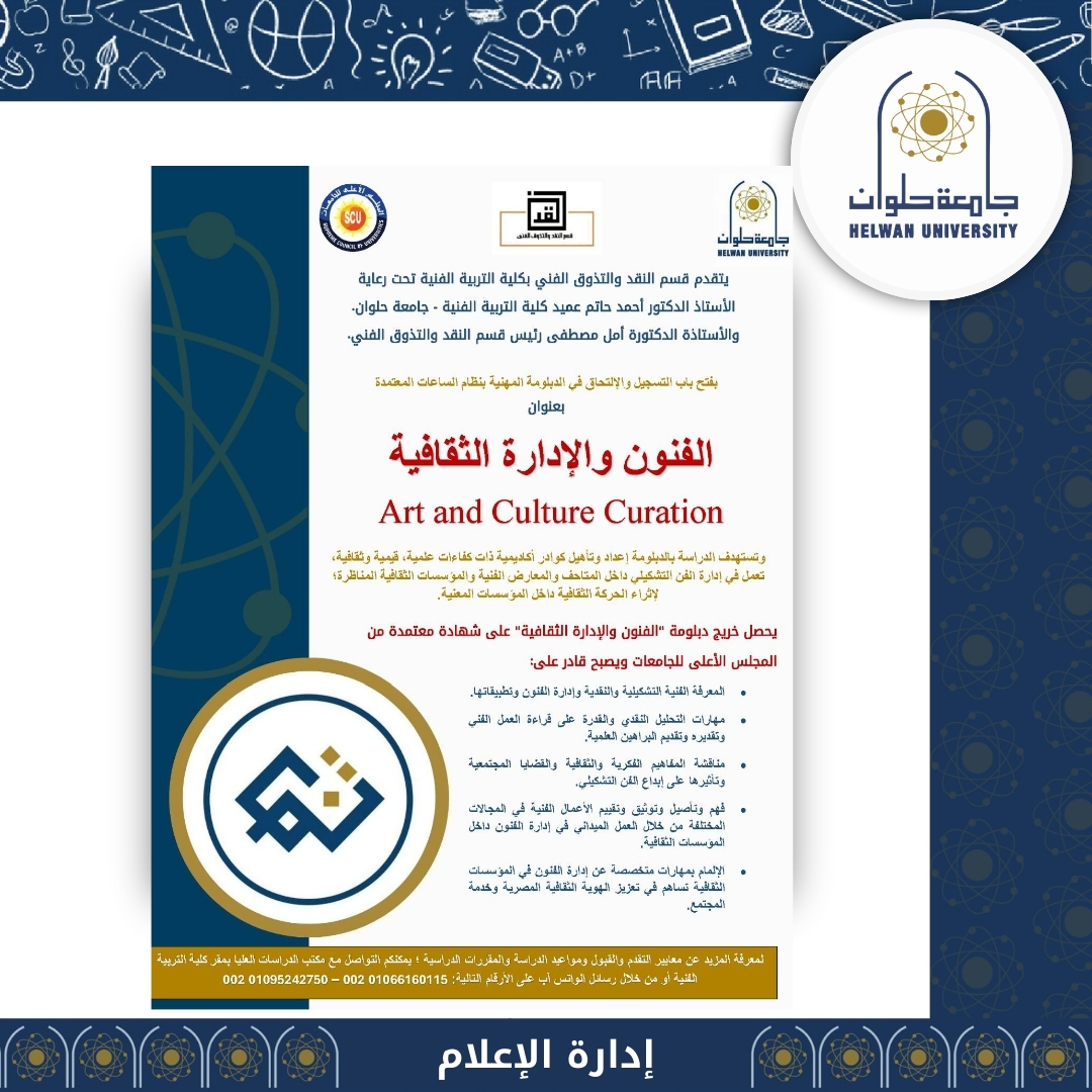 فتح باب التسجيل للدبلومة المهنية النوعية الفنون والإدارة الثقافية بكلية التربية الفنية