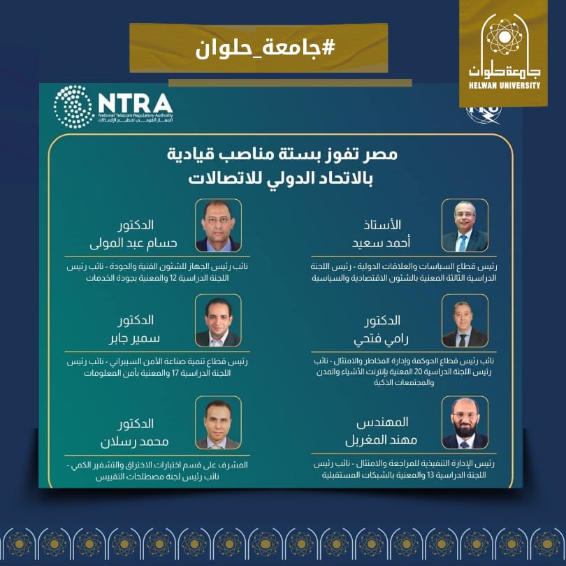 أستاذ دكتور بهندسة حلوان يفوز بمنصب نائب رئيس لجنة بالاتحاد الدولى للاتصالات