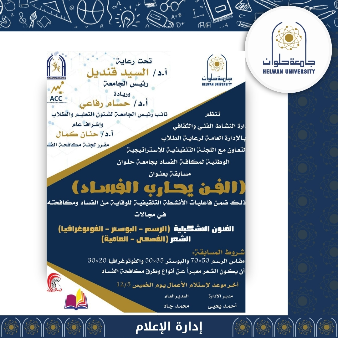 جامعة حلوان تطلق مسابقة "الفن يحارب الفساد