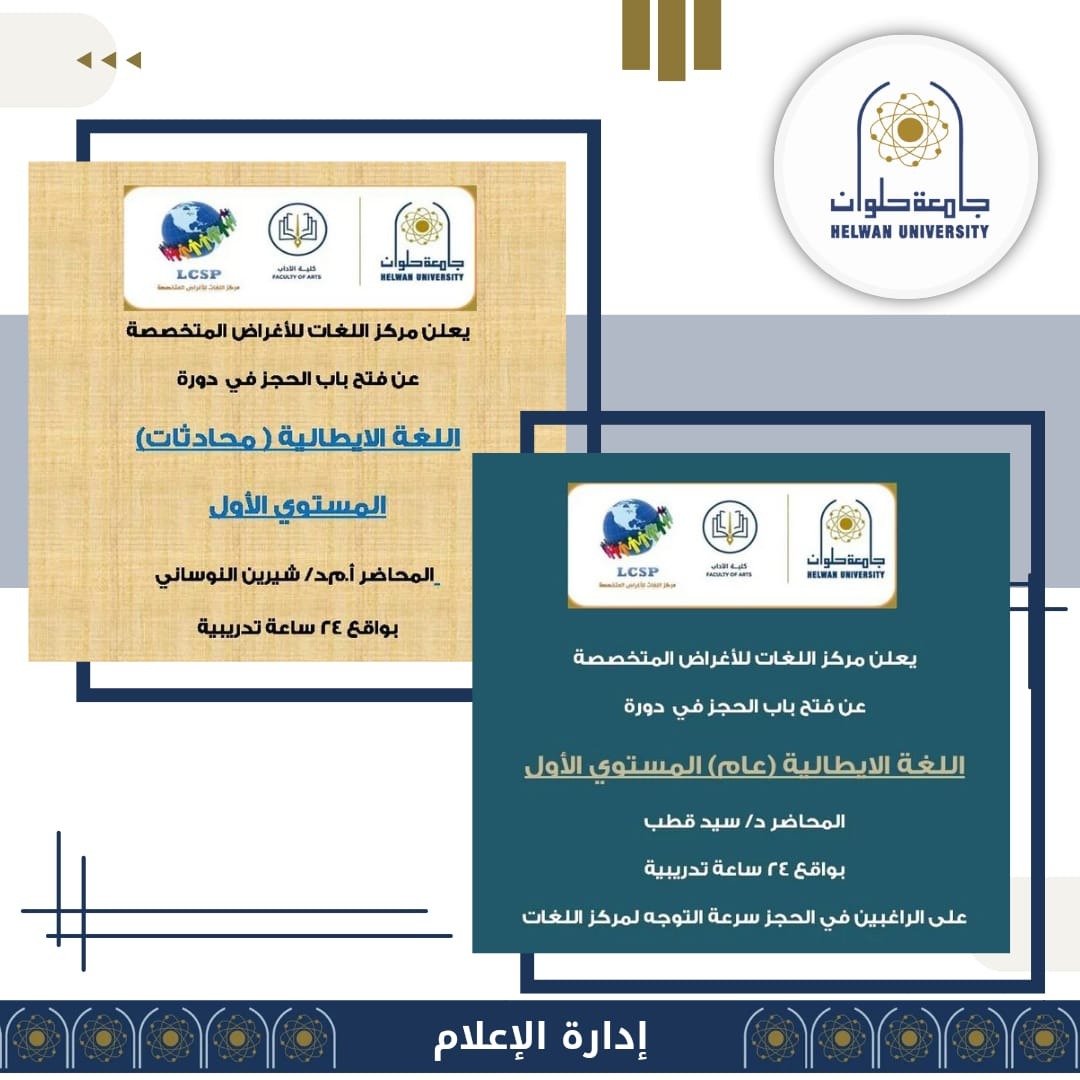 جامعة حلوان تطلق دورتين في اللغة الإيطالية