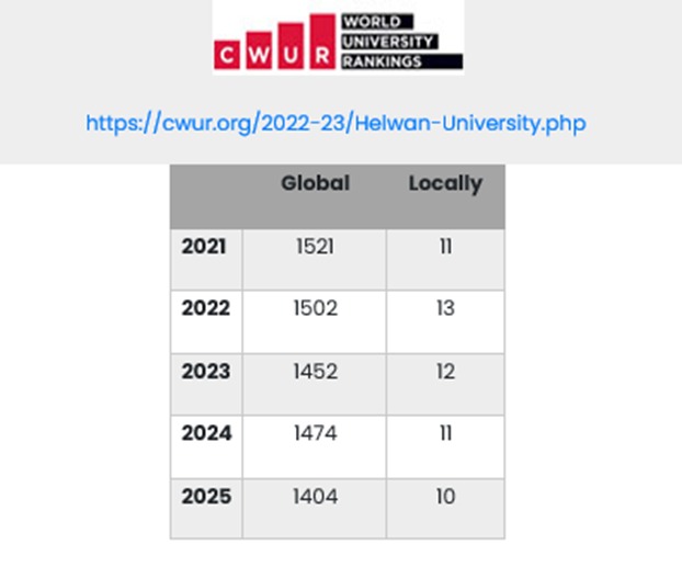Scientific and research leadership at the international, regional, and local levels, positioning Helwan University at the forefront among universities