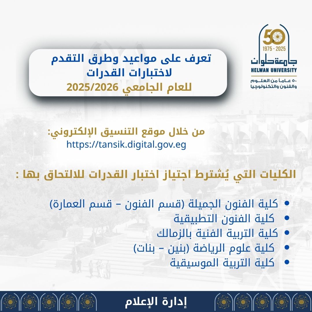 فتح باب التقديم لاختبارات القدرات للعام الجامعي 2025/2026