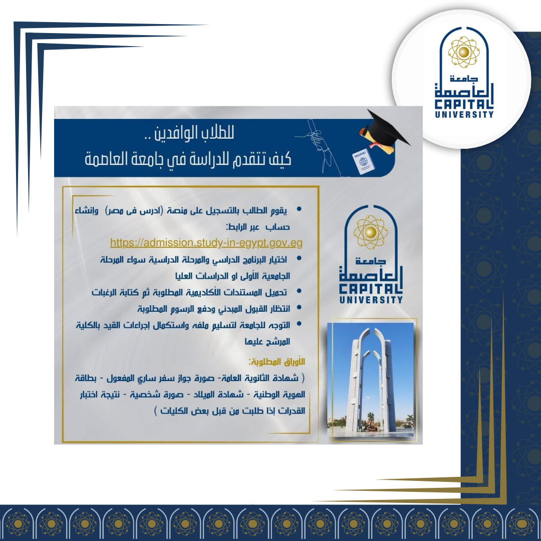 جامعة العاصمة توضح خطوات التقدم للطلاب الوافدين عبر منصة «ادرس في مصر»